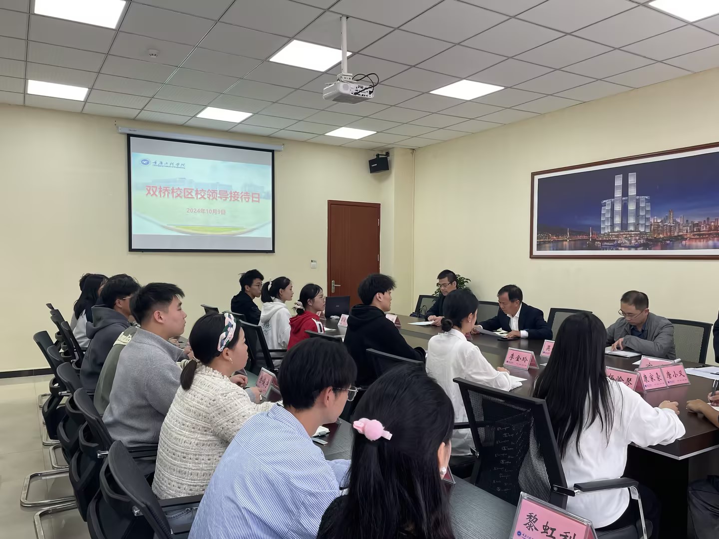 本网讯(文、图/双桥校区综合办 刘娅楠)为深入了解学生诉求,切实解决学生学习、生活中遇到的问题,进一步提高学校教学管理和服务水平,2024年10月9日,双桥校区组织召开了2024年第9次校领导接待日活动。学校党委副书记、双桥校区管委会主任唐小勇出席此次活动,双桥校区管委会教学工作办公室主任兼学校教务处处长助理吴诗奎、综合办公室副主任王儒、学生工作办公室副主任方爽及各学院学生代表参加活动。活动由方爽副主任主持。