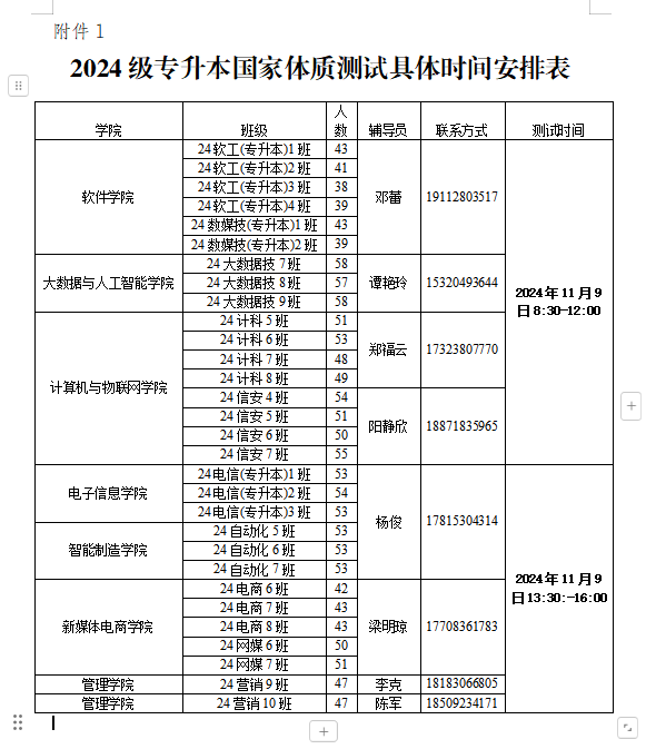 根据学校《关于开展2024年国家学生体质健康标准测试的通知》(教函[2024]163号)要求,现将2024级专升本学生体质测试工作有关事宜通知如下,请认真做好相关工作。