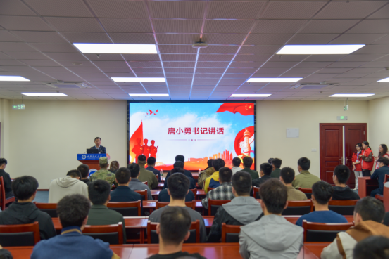唐书记指出,退伍士兵是校区宝贵的财富,他们的加入为校区注入了新的活力和动力,希望他们能够继续保持军人的优良传统和作风,为校区的建设和发展贡献自己的力量,呼吁同学们要传承精神,发扬传统,勤奋学习,提升自我,自强不息,开拓创新。