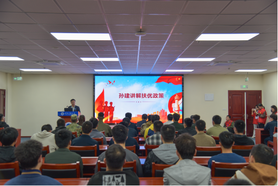 随后,孙书记给同学们介绍了退役大学生士兵的国家资助政策、教育优待政策和就业创业政策,期望能给予同学们精神和行为上的指引,早日做好学业和就业规划。校区将一如既往地关心和支持退伍士兵的成长和发展,为他们提供必要的帮助和支持,确保他们能够顺利融入校园生活,实现个人价值和社会价值的双重提升。