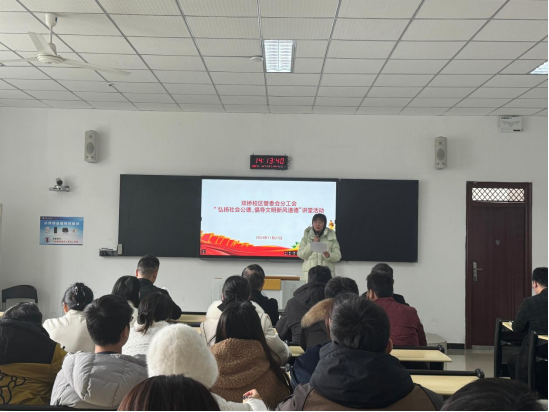 2024年11月27日,双桥校区管委会分工会积极响应社会文明建设的号召,精心策划并成功举办了以“弘扬社会公德,倡导文明新风道德”为主题的讲堂活动。此次活动旨在提升校区教职工的社会责任感和道德水平,进一步推动校园文明建设,营造和谐美好的校园环境。活动在双桥校区一教301教室举行,吸引了众多教职工的积极参与。