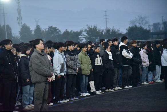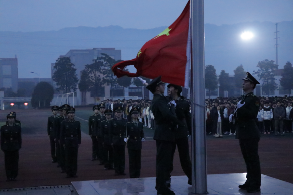 在激昂的国歌中,升旗手振臂一呼,鲜艳的五星红旗迎风飘扬,在初生的阳光映照下,2024级全体学生朝气蓬勃,精神抖擞!