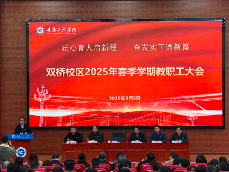本网讯(文/刘娅楠图/大学生记者团) 3月5日,双桥校区2025年春季学期教职工大会在校区第三教学楼报告厅召开。校党委副书记、双桥校区管委会主任唐小勇,校长助理、基础学院院长蒋国华出席会议。会议由校长助理、双桥校区党工委书记邹均主持。