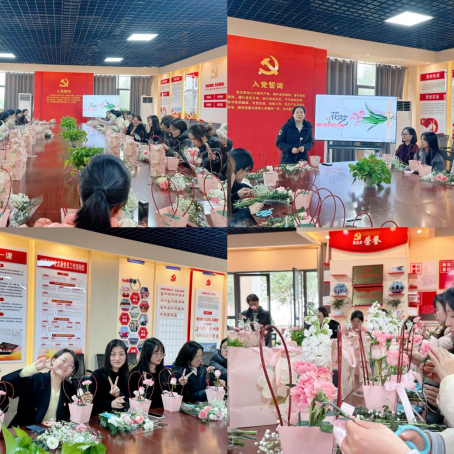 在“诗情‘花’艺,绽放生活之美”的插花活动现场,更是花香四溢,充满了欢声笑语。专业花艺师详细介绍了插花艺术的基本知识、技巧和搭配原则,并现场进行了精彩的插花演示。女教职工们在花艺师的指导下,充分发挥自己的创造力和想象力,将一朵朵鲜花巧妙搭配,创作出了一盆盆独具匠心的插花作品。这些作品或清新淡雅,或热烈奔放,展现了女教职工们对生活的热爱和对美的追求。