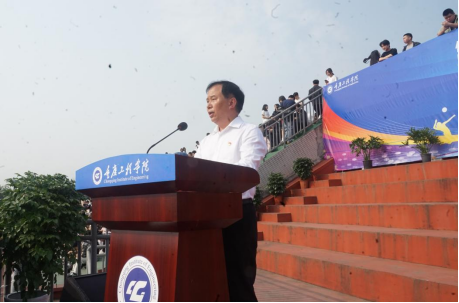 党委副书记、双桥校区管委会主任唐小勇为开幕式致辞,他表示,我校始终将体育教育作为立德树人的重要抓手,通过打造“五育五节五色”校园文化活动体系、搭建“四位一体”心理健康工作体系,以体育教育强健体魄、磨砺意志,以心理健康教育涵养精神、完善人格。借此运动会,他提出三点期望:一是希望同学们修身立己,存健康之念,让青春在汗水中淬炼出强健体魄;二是希望同学们锤炼韧性,在点滴进步中实现跨越式成长;三是希望广大师生联结互助、奋勇争先,把赛场上的奋进姿态转化为建设特色鲜明的高水平应用型大学的坚实力量。