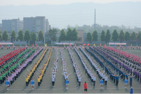 其后,各学院师生广播体操团体比赛有序进行。他们动作整齐,意气风发,展现出我校全体师生精神抖擞、奋进向上的良好风貌。