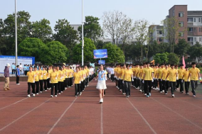 彩旗方阵、花环方阵、教师方阵及9个学院的特色方阵昂首阔步、口号响亮,用整齐划一的步伐依次踏入会场,以青春的气息奏响拼搏的乐章。