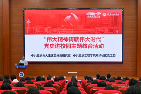 本网讯(文/图 双桥校区记者团)为推动党史学习教育常态化长效化,引导青年学生传承红色基因、赓续精神血脉,416下午,中共重庆工程学院双桥校区党工委邀请中共重庆市大足区委党史研究室到校开展伟大精神铸就伟大时代党史进校园主题教育活动校党委副书记、双桥校区管委会主任唐小勇出席活动