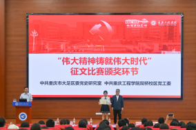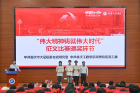 随后,大足区委党史研究室调研员王大革、大足区委党校教务科科长、副教授李远丹唐小勇书记分别伟大精神铸就伟大时代征文比赛获奖学生颁奖。获奖学生代表在发言中号召同学们我们不仅要做伟大精神的传承者,更要做伟大时代的续写者。