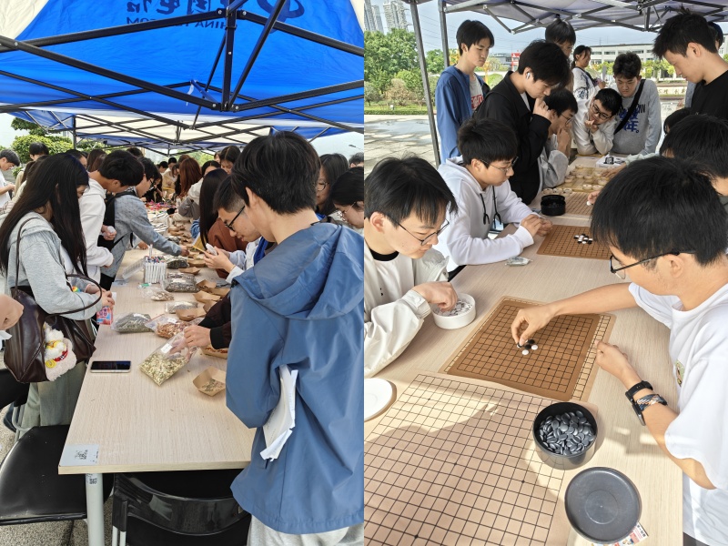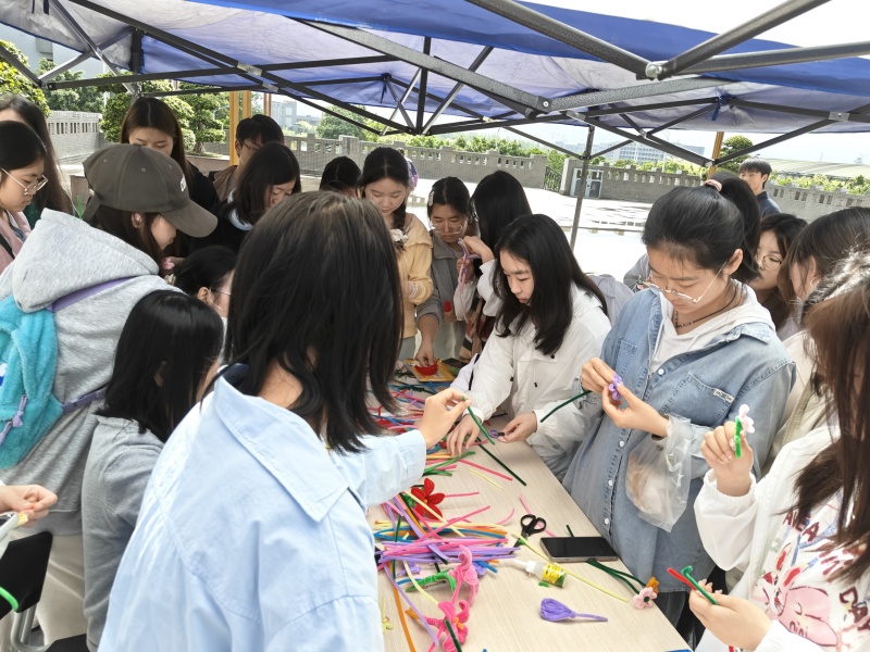 开幕活动当天,图书馆布置了数字资源宣传与推广平台,图情中心学生助理现场接受读者的各项咨询,并派发学习资料和宣传手册。此外,现场设置了“识草药 制香囊”、扭扭棒制作等非遗体验项目以及中国象棋、围棋对弈传统投壶等多个趣味活动环节,受到读者的热烈欢迎。校区综合办、学工办以及教务办的老师们来到开幕活动现场,与学生一起体验“非遗”文化、亲切交流,倡导并鼓励同学们积极参与校园活动。