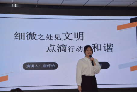 比赛现场,来自大一的17名参赛选手围绕“文明交友”“语言文明”“寝室文明”“网络文明”“无烟校园”等内容展开精彩演讲。选手们结合身边事例,以生动的语言和饱满的情感,呼吁同学们从身边小事做起,将文明意识转化为日常行动,践行文明规范,共同推动校园文明风尚的形成,争做文明重工人。