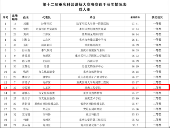 此次获奖不仅是对选手个人综合能力的高度肯定,更彰显了我校在科普教育、实践育人与学生综合素质培养方面的显著成效,也为重庆科普事业发展贡献了重工力量。