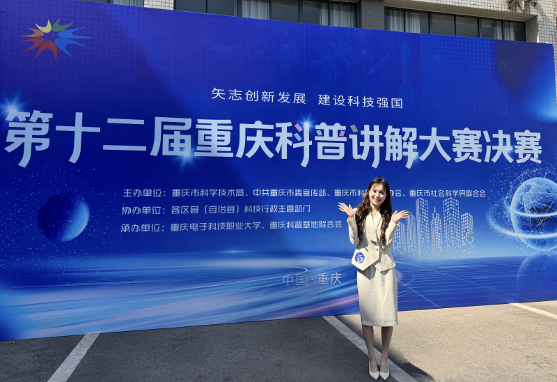 本网讯(文 图/双桥校区管委会 杨双溢)5月11日,第十二届重庆市科普讲解大赛决赛拉开序幕。重庆工程学院双桥校区选送的李盈颖同学,代表大足区前往重庆电子科技职业大学参加决赛。李盈颖同学凭借扎实的专业功底与出色的舞台表现力,从全市科普精英中脱颖而出,并以优异表现成功荣获第十二届重庆市科普讲解大赛二等奖,为学校和大足区赢得殊荣!