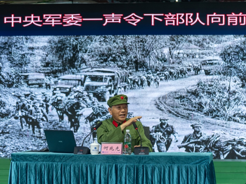 原中国人民解放军炮五团一营教导员何兆光“以铭记历史,缅怀先烈”为主题,以“红岩神炮”为切入点,深情回顾了战火纷飞、奋勇杀敌的往昔岁月,深切悼念了为捍卫祖国领土完整与国家安全而英勇牺牲的英烈们,同时也缅怀了“好人好马上三线”的特殊年代以及为三线建设奉献了青春的前辈们。
