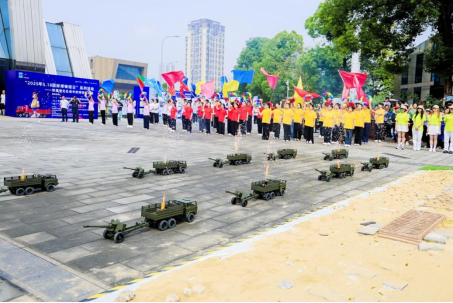 清晨7时30分,志愿者们已集结完毕,高效完成场地布置与流程彩排。9时30分,活动正式启幕,由重工学子组成的13个特色方阵以彩旗、花环等元素串联起历史与现代的交响乐。现场,学生们操控汽车模型完成高难度动作,展现扎实的专业功底;无人机编队则以光影变幻拼出“甲子荣耀”“强军报国”等字样,将科技感与仪式感推向高潮。他们的热情与专注,成为活动现场一道亮丽的风景线,为这场盛会注入了源源不断的青春活力。
