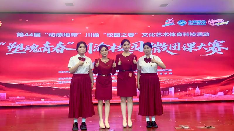本网讯(文/图 管理学院2024级 冉玉伶)6月15日,由市委教育工委、市教委、团市委等单位主办的第44届“校园之春”川渝微团课大赛决赛在重庆师范大学落下帷幕,通过课程设计、现场微团课讲演、答辩等环节,重庆工程学院双桥校区选送的作品《三线岁月:穿越时空距离,赓续红色精神》(指导教师:杨双溢老师,参与学生:冉玉伶、冉欣怡、姚欣易、赵乙玮)荣获(本科学生组)“三等奖”(总排名第八),以青春语态诠释红色传承,彰显重工风采。