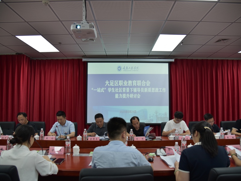 本网讯(文/双桥校区管委会综合办 刘娅楠 图/双桥校区管委会学工办 杨世玲)6月24日下午,大足区职业教育联合会在重庆工程学院召开专题研讨会,聚焦“一站式”学生社区背景下辅导员新质思政工作能力提升。大足区教育委员会高校服务中心主任金国正、副主任刘锋,各成员单位学生社区工作相关人员20余人齐聚双桥校区,共商新时代思政教育创新路径。