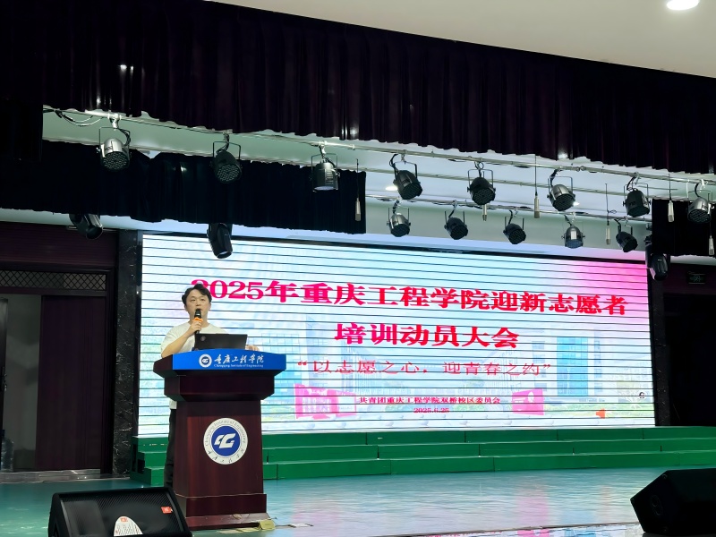 本网讯(文/图 新媒体电商学院 钟微)6月25日,“以志愿之心,迎青春之约”2025年迎新志愿者培训动员大会在双桥校区办公楼报告厅举行。本次大会由重庆工程学院双桥校区团委负责老师杨双溢主持,重庆工程学院双桥校区团委书记陈军出席,参与迎新工作的全体志愿者共同参会。