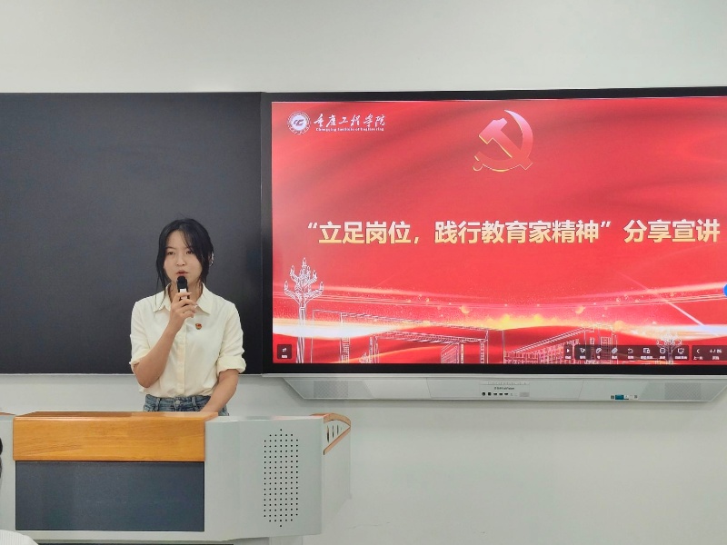 在分享宣讲环节,学工办周艺结合理论与工作实际,阐述了自己对“教育家精神”内涵、意义的理解;辅导员向青芸聚焦学生思政教育与心理辅导工作,分享了自身在践行 “教育家精神” 过程中的真切感悟与成长心路。两位老师结合自身岗位实践与育人经历,进行了情真意切、内容翔实的精彩分享,为大家进一步将“教育家精神”内化于心、外化于行,在实践中传承精神、履职尽责提供了生动范例与明确方向。