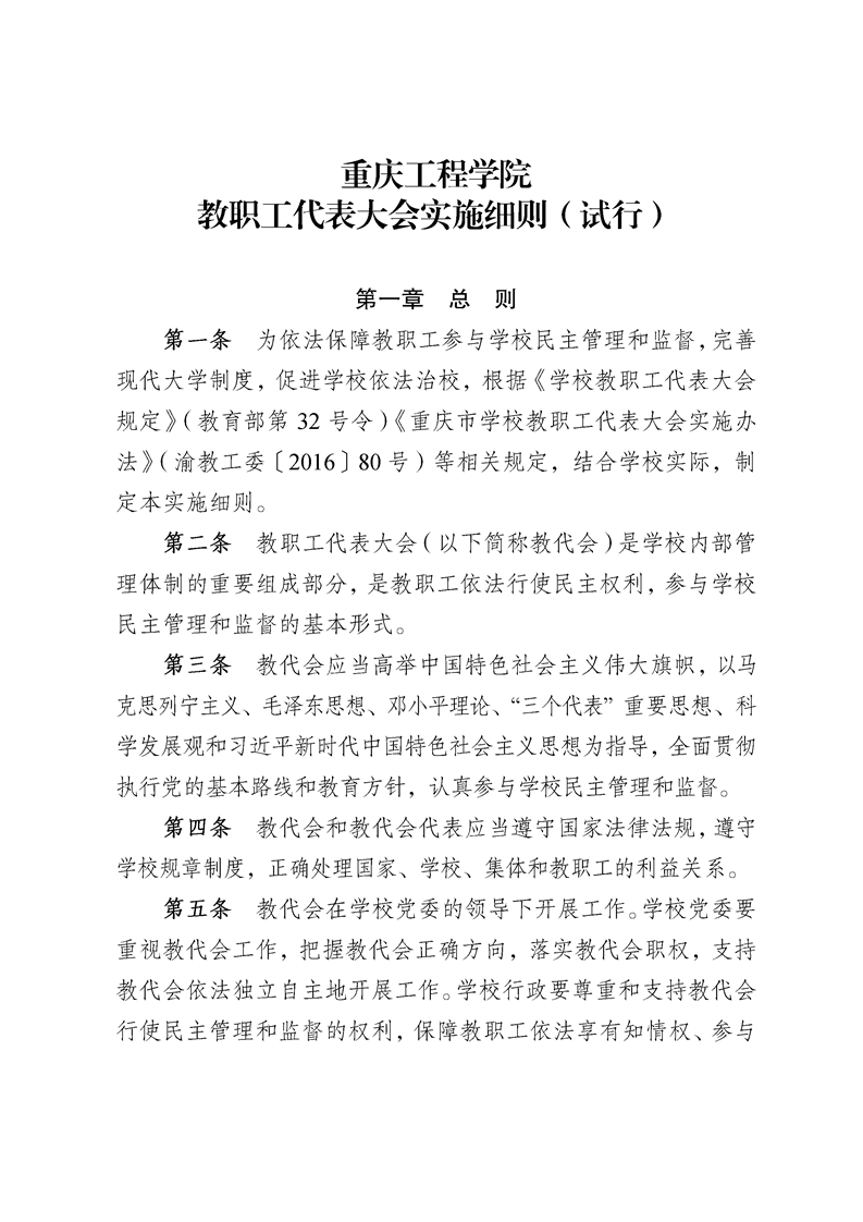 重庆工程学院教职工代表大会实施细则(试行)