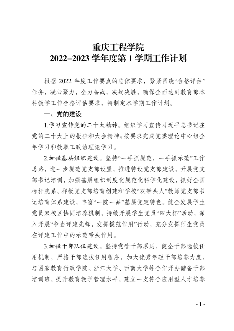 > 重庆工程学院2022-2023学年度第1学期工作计划