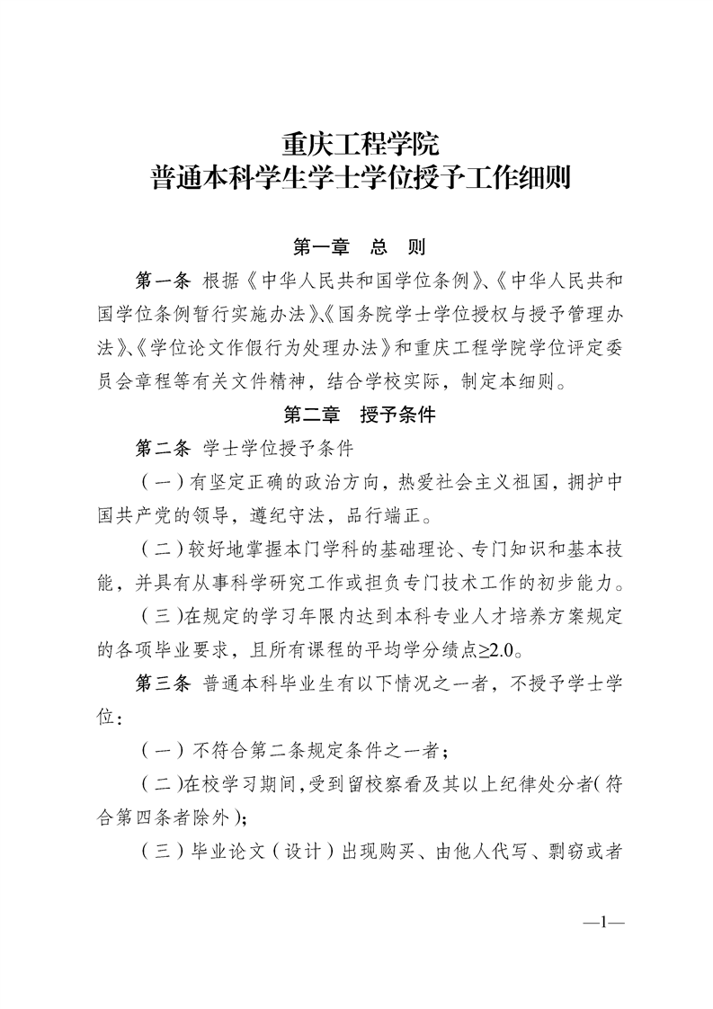 > 重庆工程学院普通本科学生学士学位授予工作细则