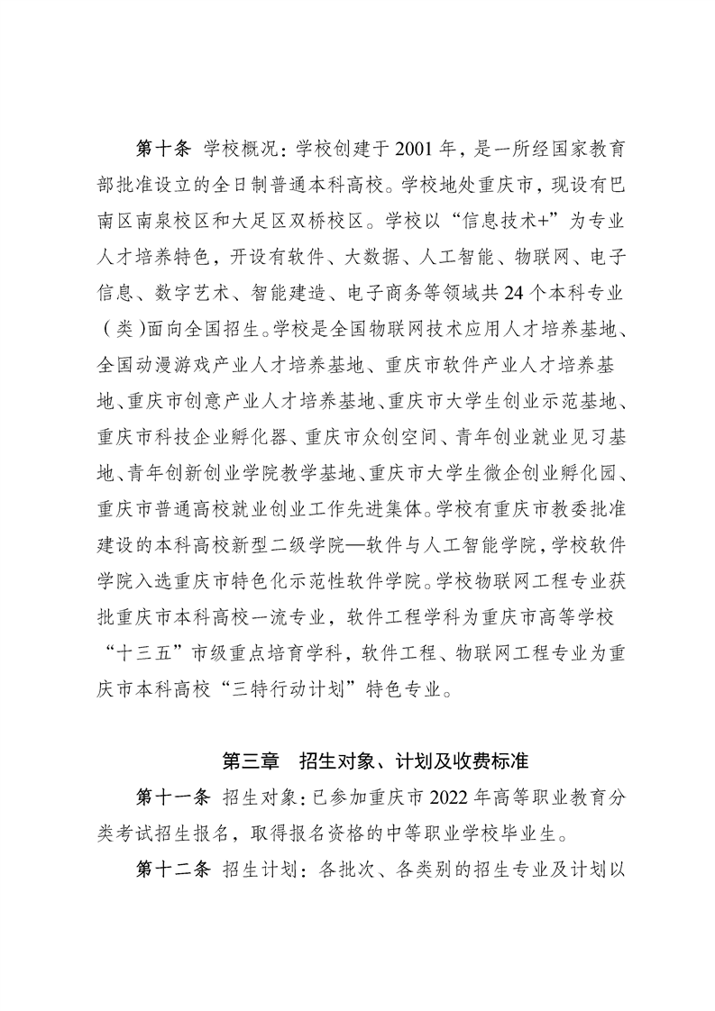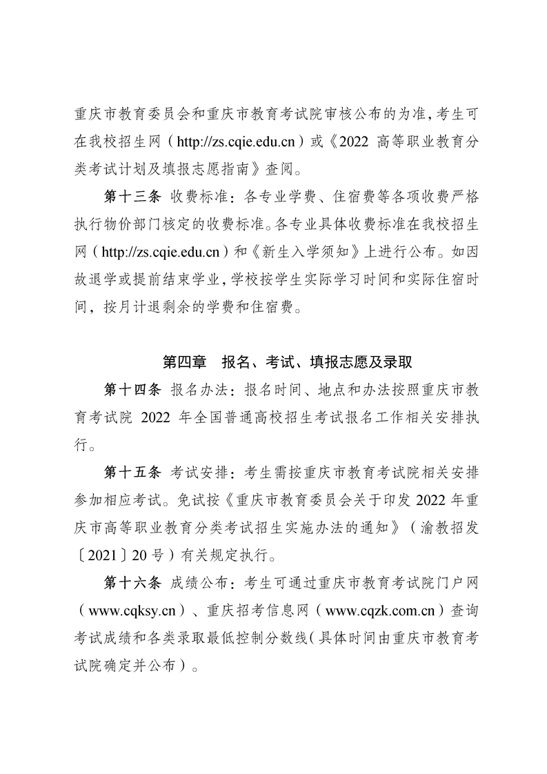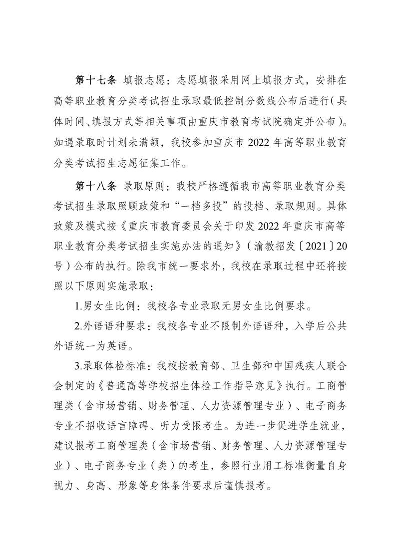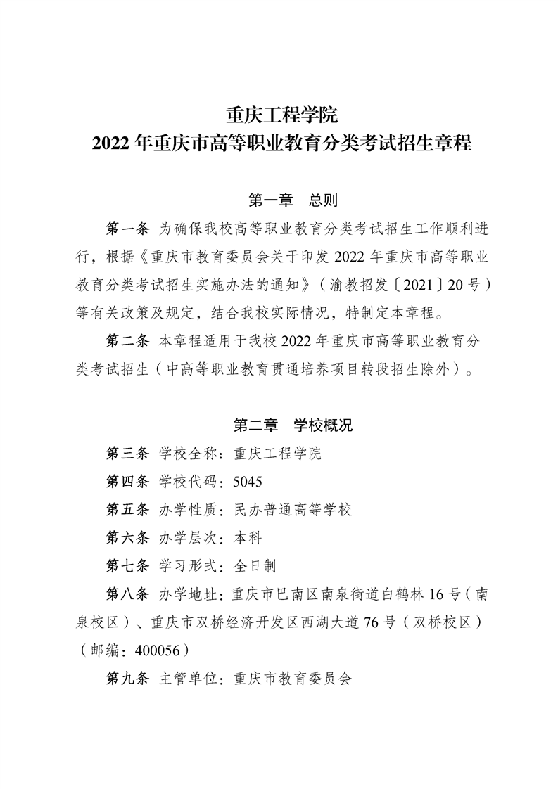 重庆工程学院2022年重庆市高等职业教育分类考试招生章程
