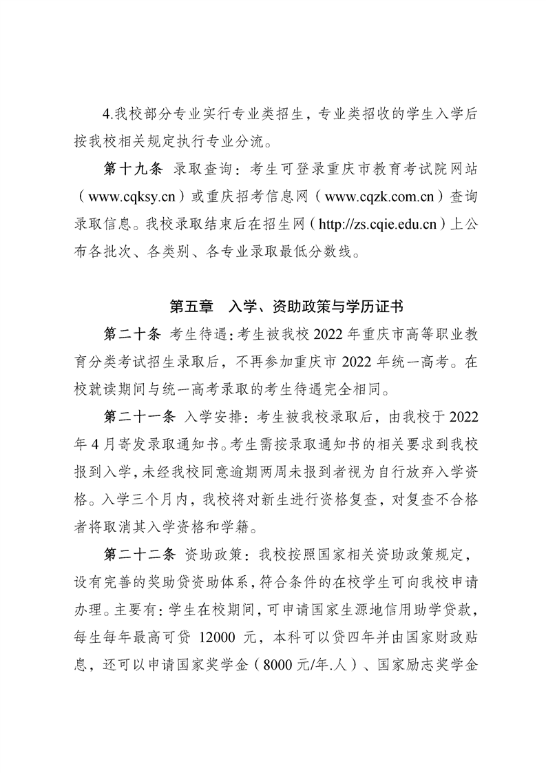 > 重庆工程学院2022年重庆市高等职业教育分类考试招生章程