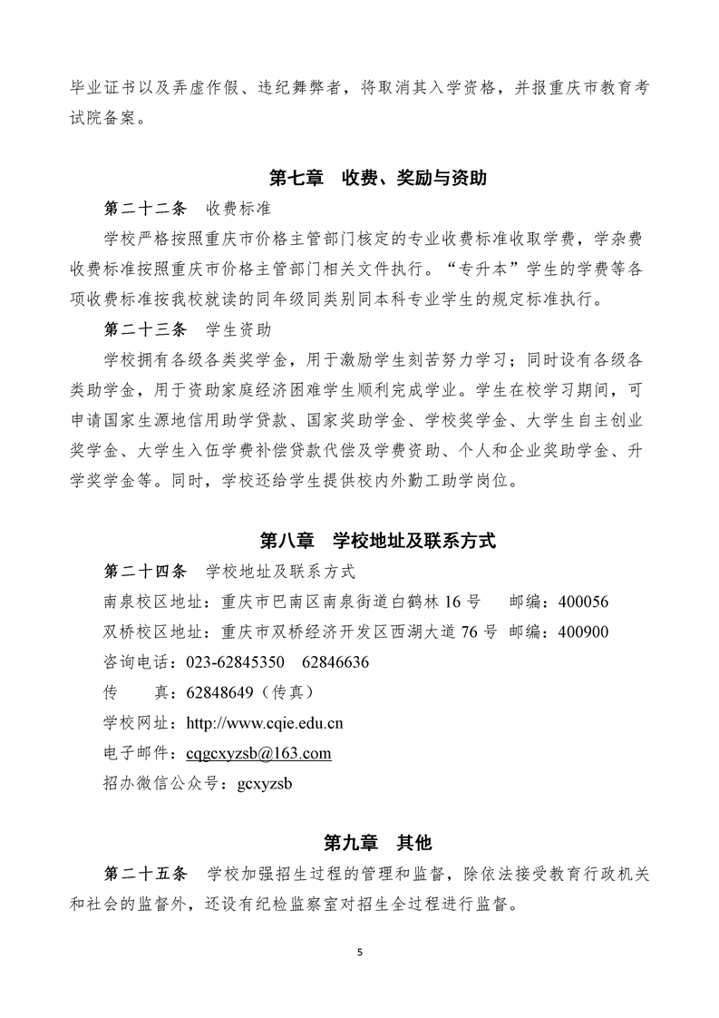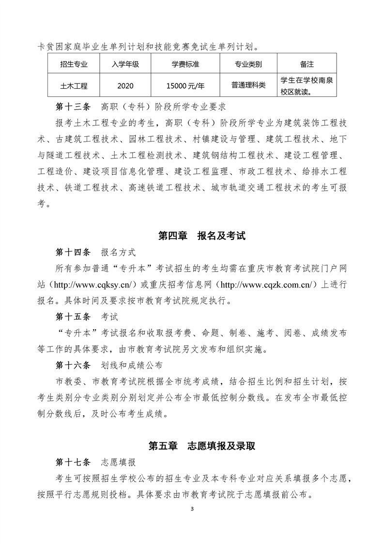 重庆工程学院2022年重庆市高等职业教育分类考试招生章程