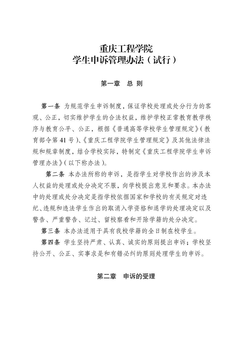 > 重庆工程学院学生申诉管理办法(试行)