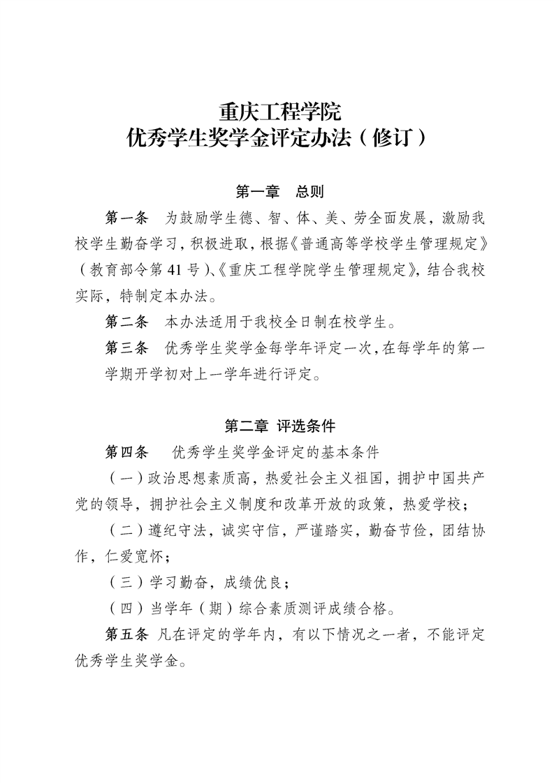 > 重庆工程学院优秀学生奖学金评定办法(修订)