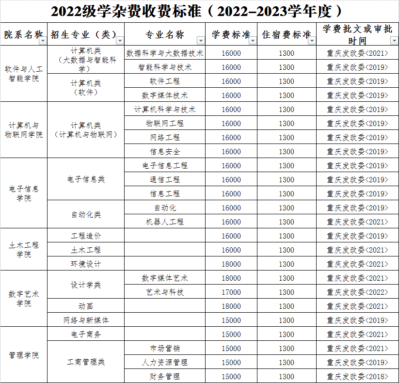 2019-2021级学杂费收费标准(2022-2023学年度)