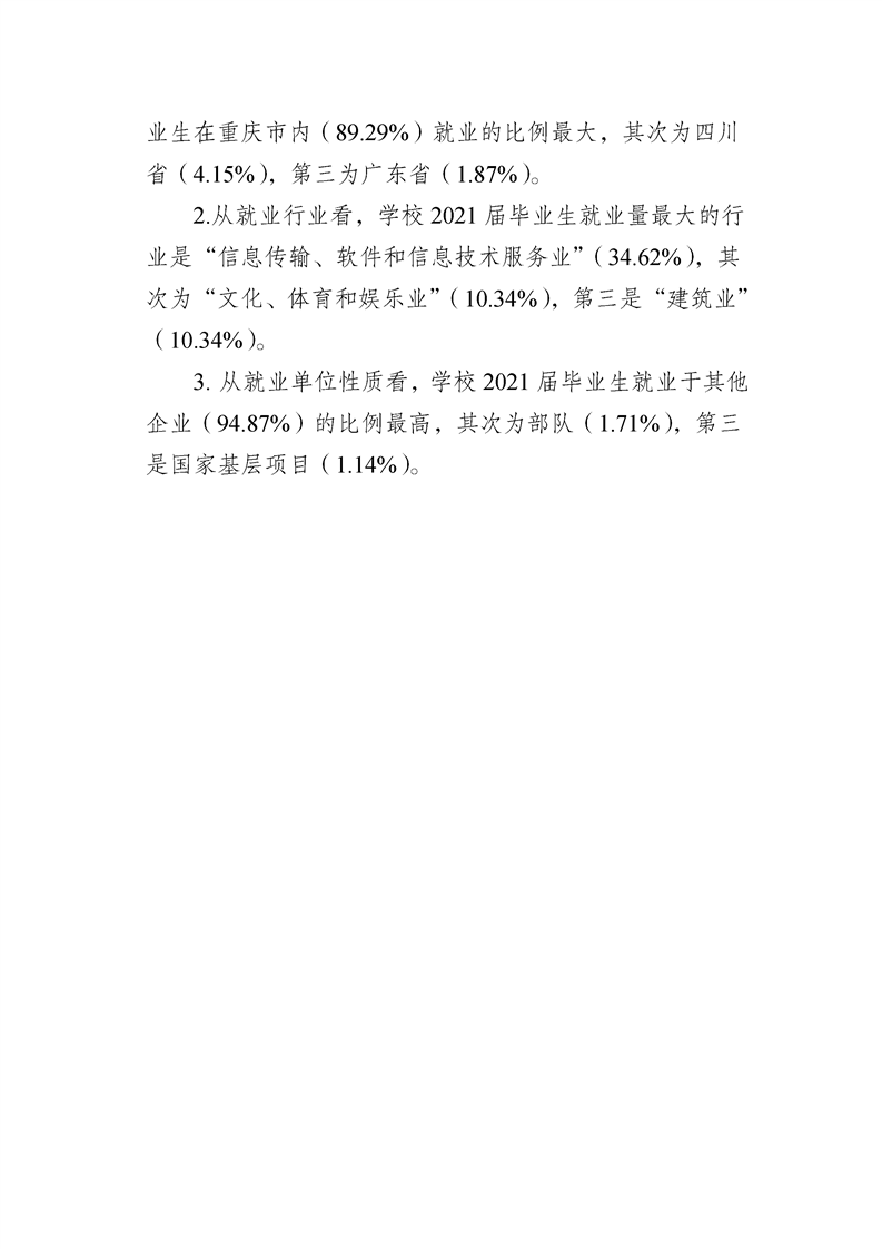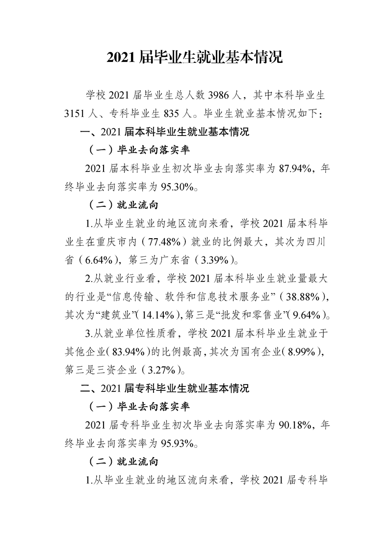 重庆工程学院2021届本科毕业生就业质量年度报告