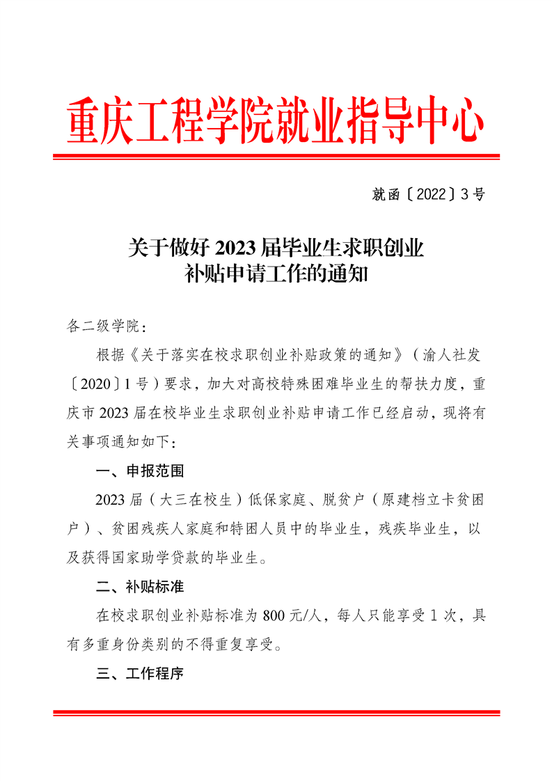 关于做好2023届毕业生求职创业补贴申请工作的通知