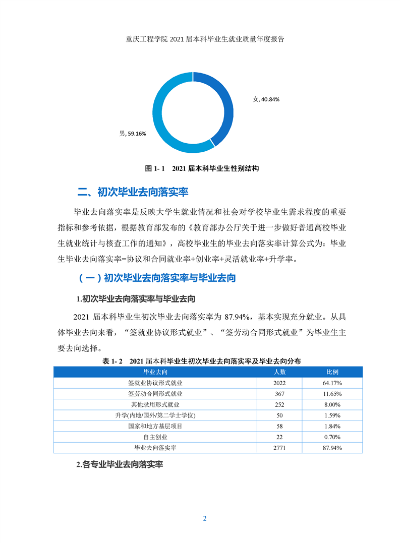 > 重庆工程学院2021届本科毕业生就业质量年度报告