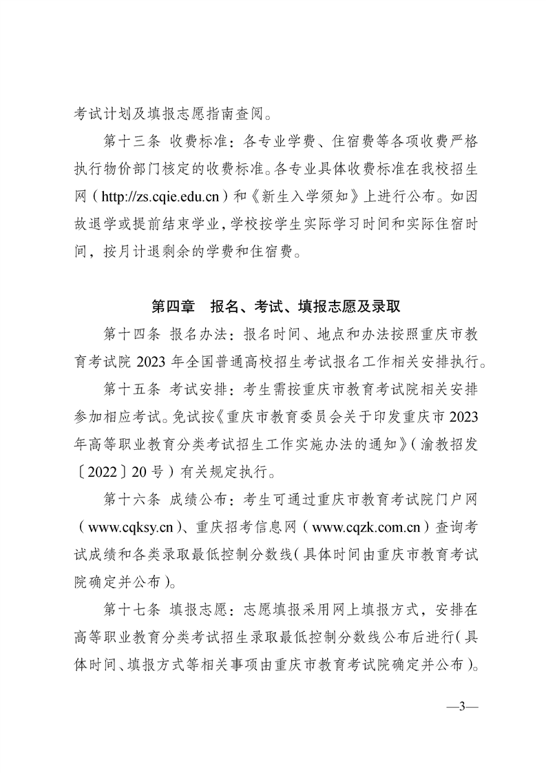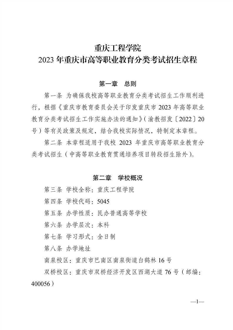 重庆工程学院2023年重庆市高等职业教育分类考试招生章程