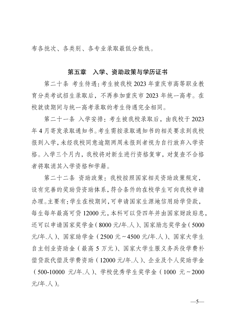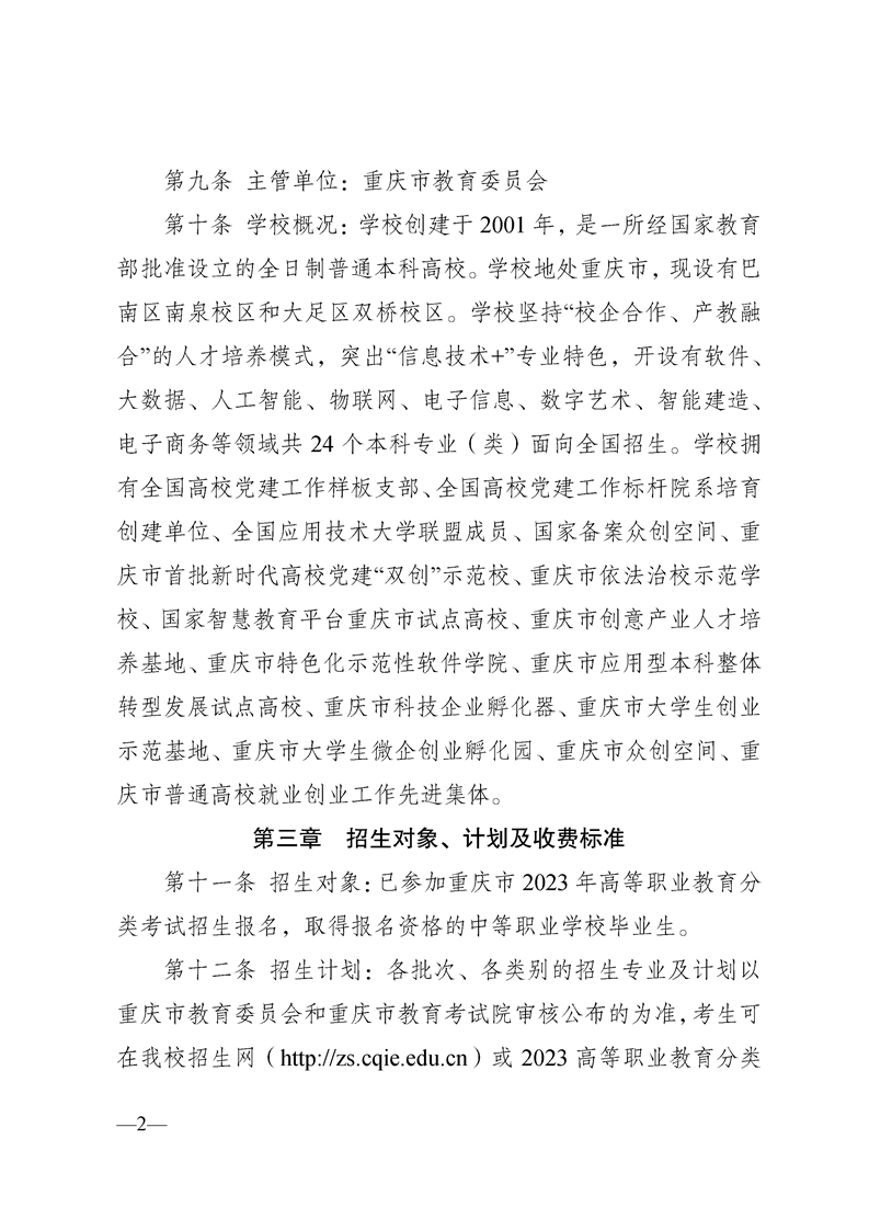重庆工程学院2023年重庆市高等职业教育分类考试招生章程