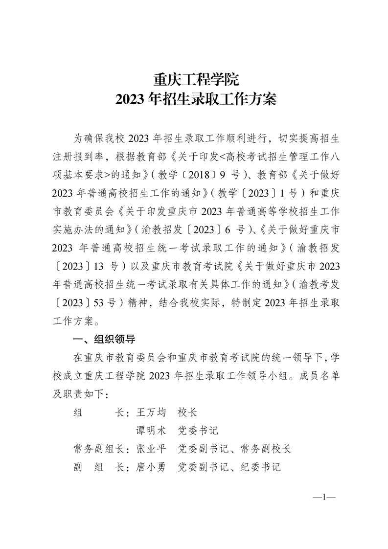 当前位置:首页 > 招生考试 > 重庆工程学院2023年招生录取工作方案