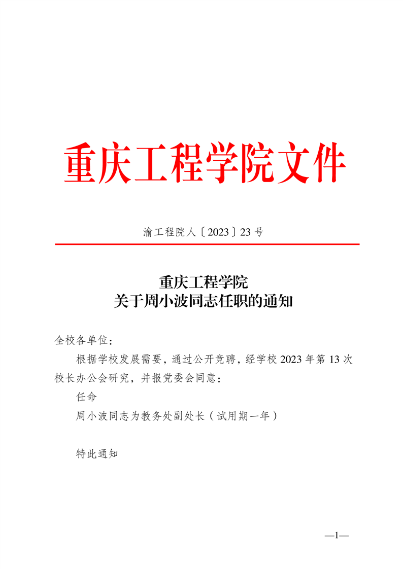 关于周小波同志任职的通知