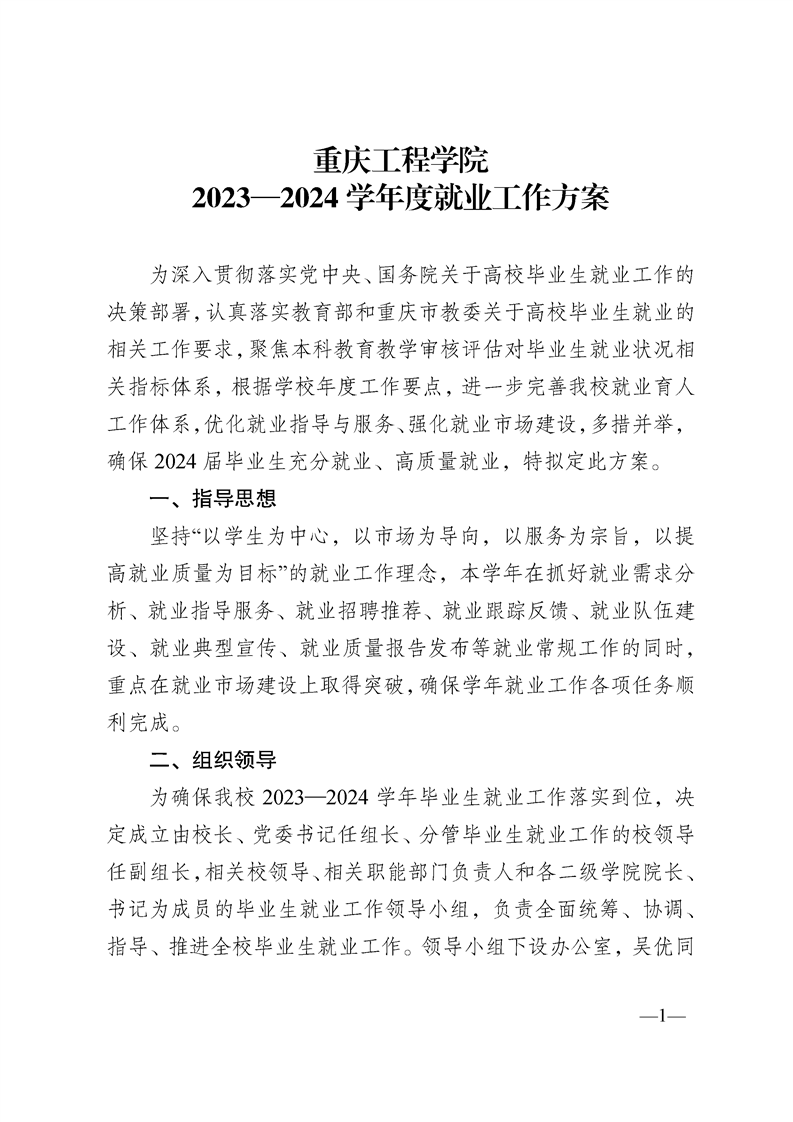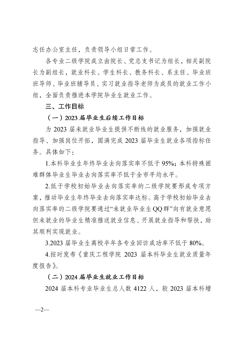 重庆工程学院2023—2024学年度就业工作方案