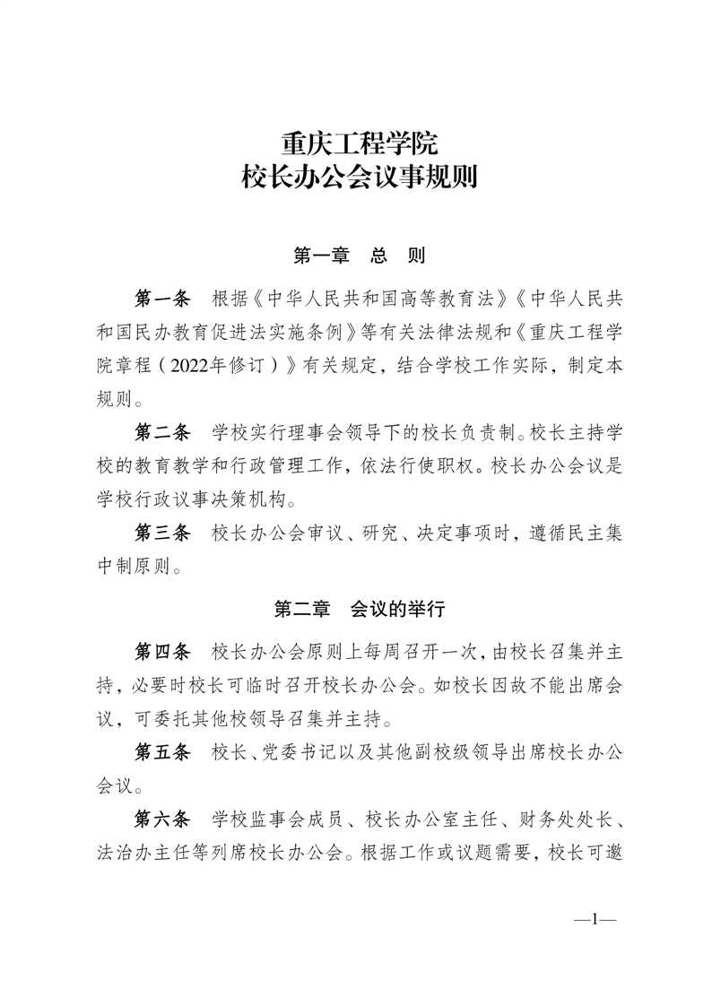 当前位置:首页 > 基本信息 > 重庆工程学院校长办公会议事规则