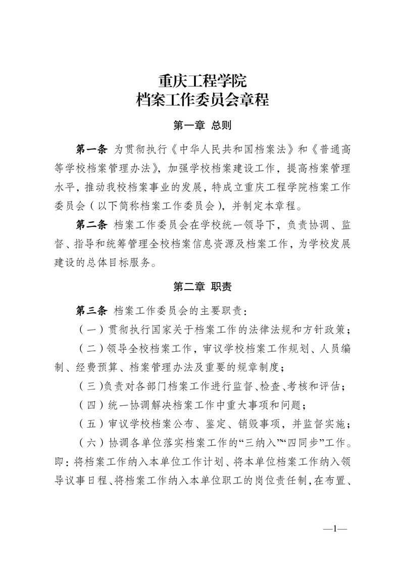 当前位置:首页 > 基本信息 > 重庆工程学院档案工作委员会章程