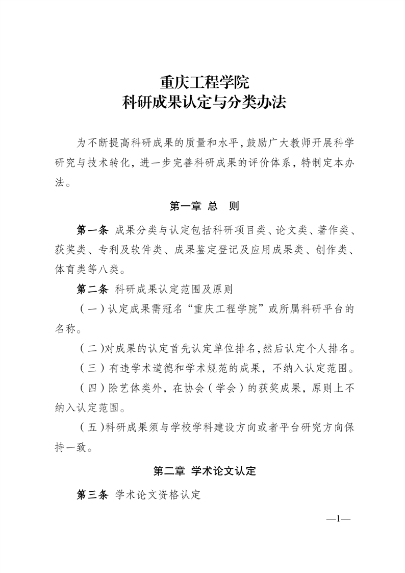 当前位置:首页 > 教学质量 > 重庆工程学院科研成果认定与分类办法