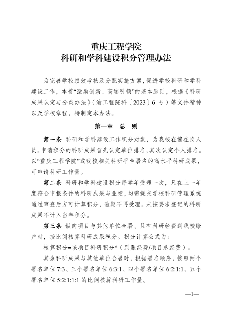 当前位置:首页 > 教学质量 > 重庆工程学院科研和学科建设积分管理办法