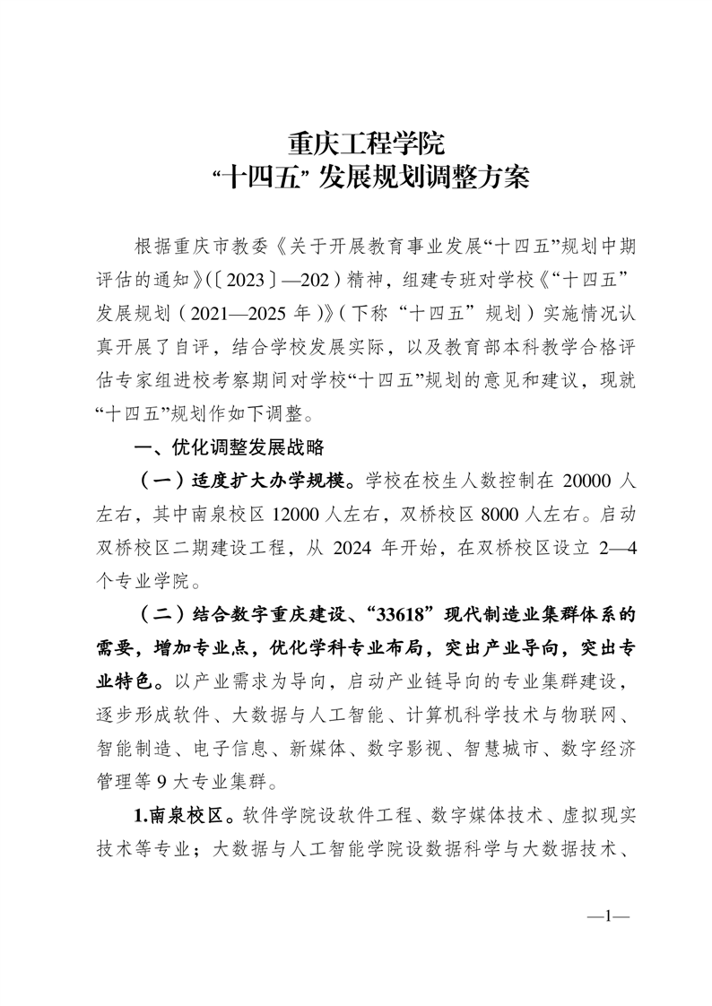 当前位置:首页 > 基本信息 > 重庆工程学院“十四五”发展规划调整方案