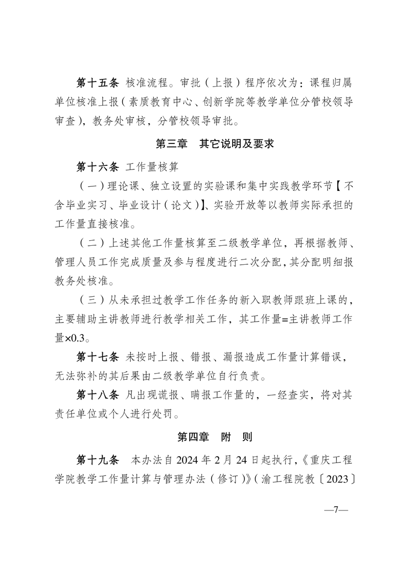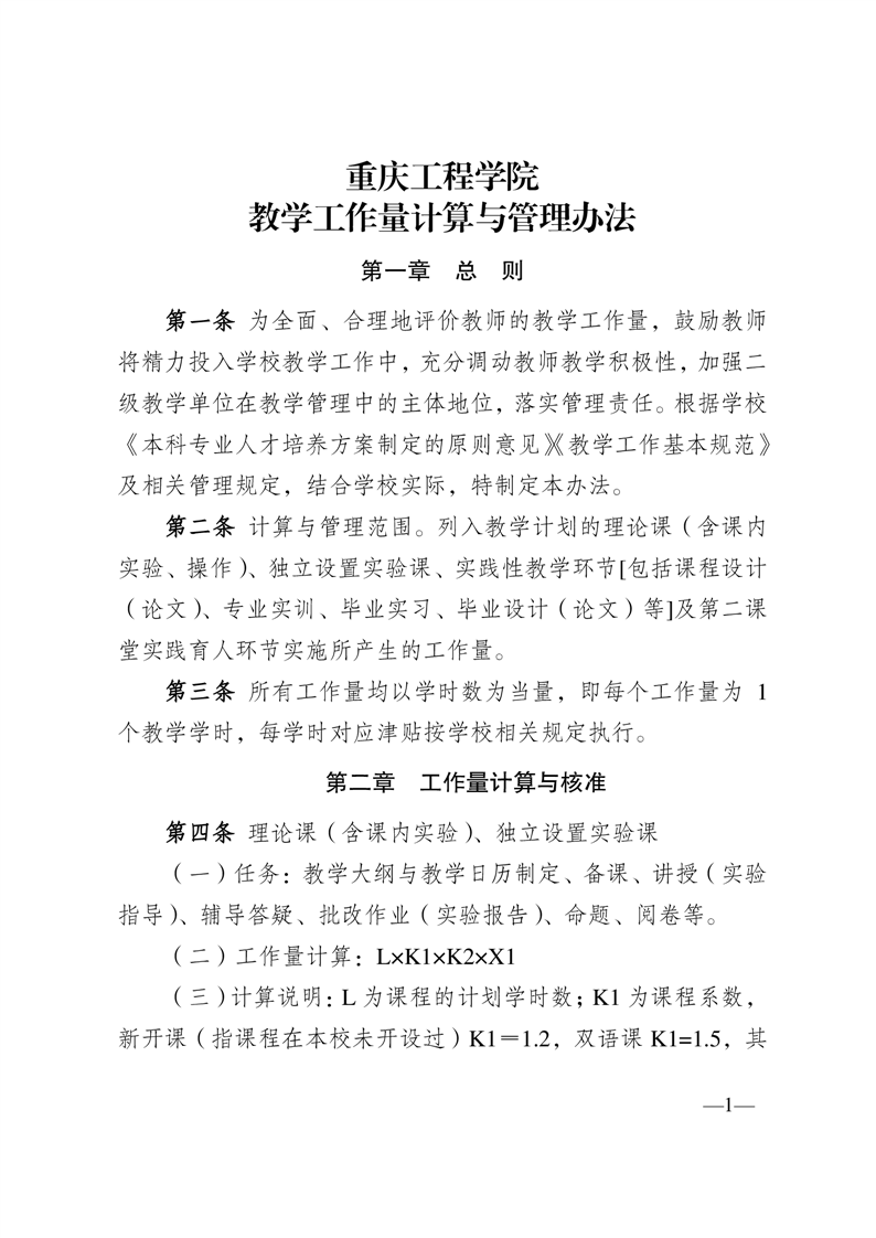 当前位置:首页 > 教学质量 > 重庆工程学院教学工作量计算与管理办法(2023年修订)