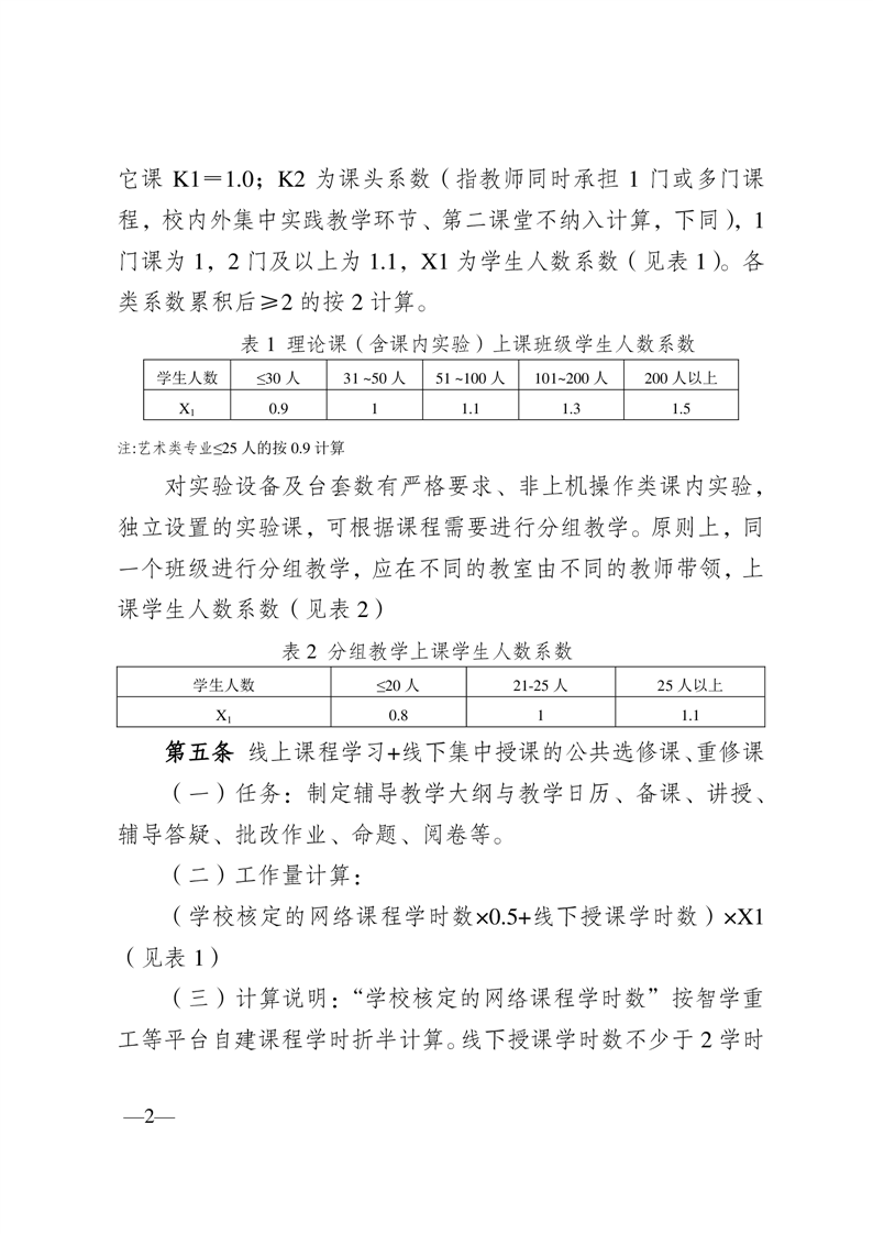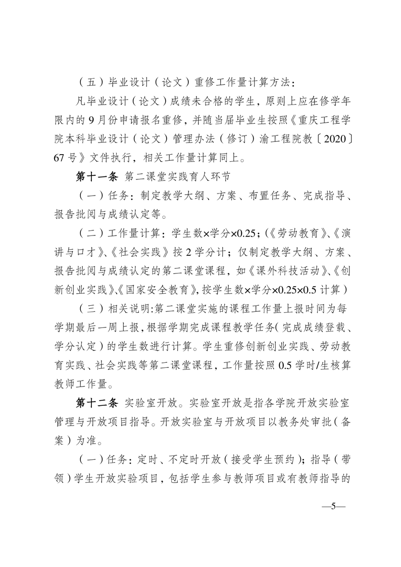 重庆工程学院教学工作量计算与管理办法(2023年修订)