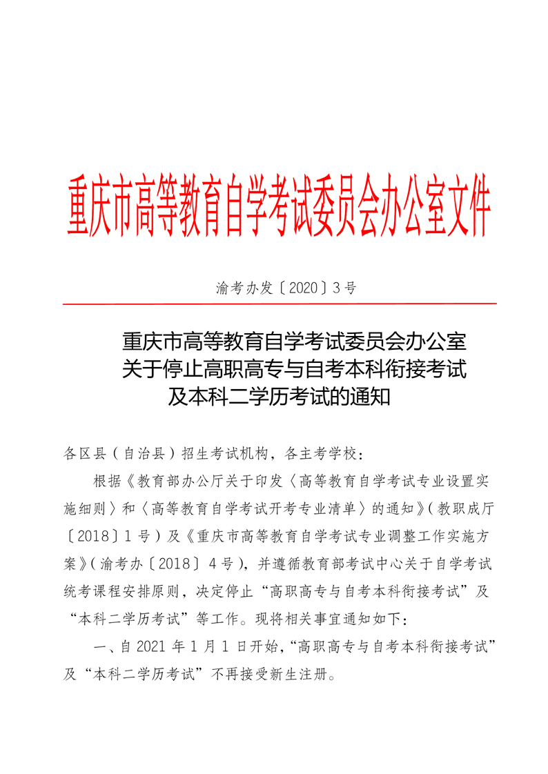 关于停止高职高专与自考本科衔接考试 及本科二学历考试的通知