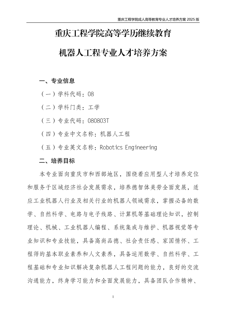 机器人工程专业(专升本)