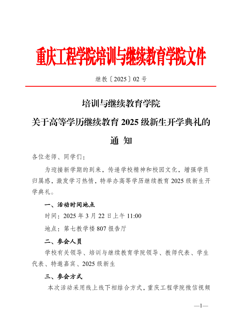 培训与继续教育学院关于成人高等教育2025级新生开学典礼的通知